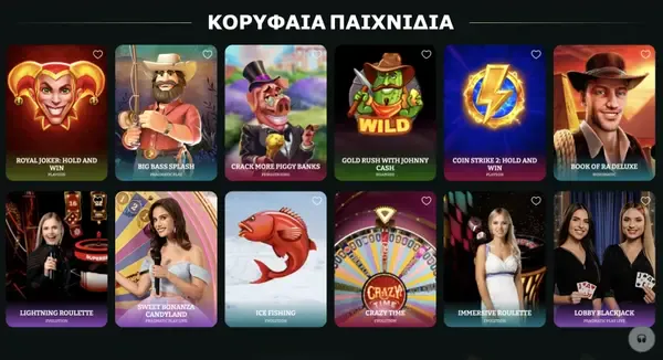 | Τύποι Παιχνιδιών | Φρουτάκια, Επιτραπέζια Παιχνίδια, Live Casino, Ξυστά, Instant Wins, Προοδευτικά Τζακπότ |